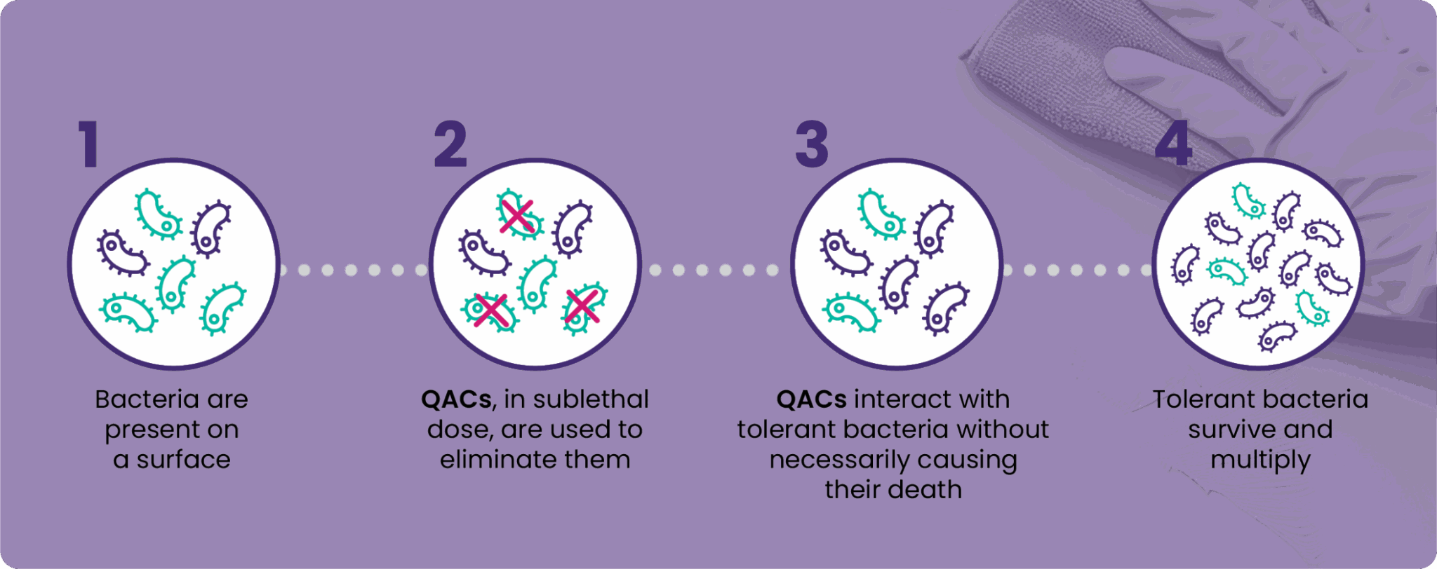 In all other cases, QACs can interact with tolerant micro-organisms, but not to the point of causing their death.