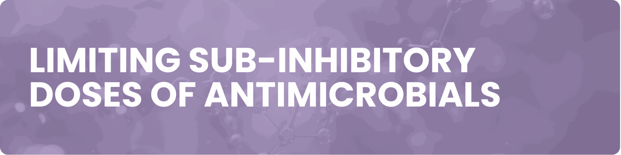 Firstly, it is important to limit sub-inhibitory doses, i.e. doses that are not powerful enough to achieve the desired effect. This low dosage will destroy some micro-organisms, but those that survive will be less sensitive to the antimicrobials used.5,6,7 If this process were to continue, the active concentration of antimicrobials could become ineffective.