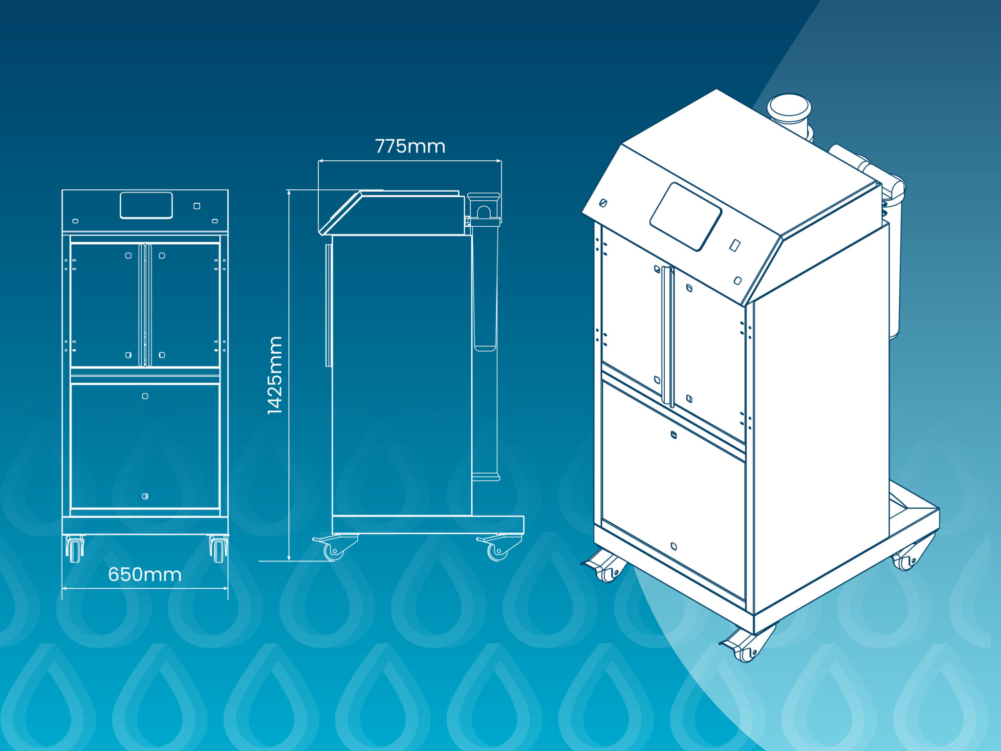 Rinse Assure combines water filtration and chlorine dioxide (ClO2) dosing to provide bacteria-free water.