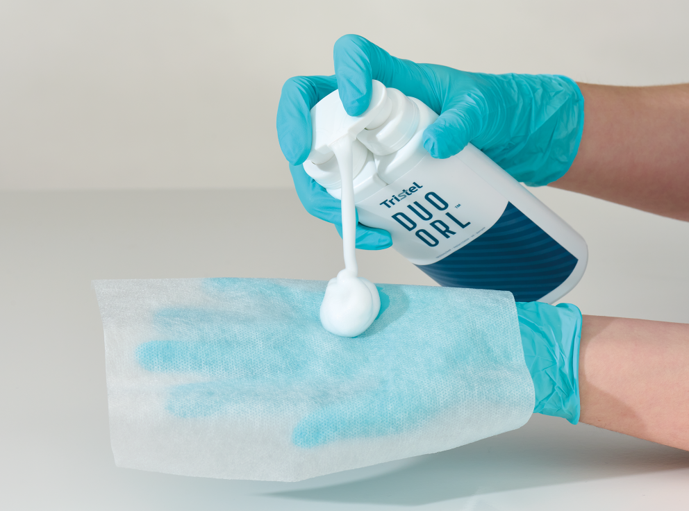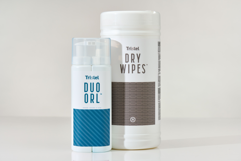 Tristel DUO ORL est toujours à portée de main. C’est le seul désinfectant capable d’accompagner à la fois le dispositif médical et le clinicien, disponible au lieu de soins pour réaliser une désinfection de haut niveau.