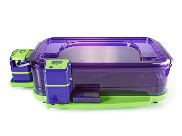 Das Stella System ist eine kleine, leichte Einheit, die 82 cm breit, 48 cm tief und 18 cm hoch ist. Im leeren Zustand beträgt das Gewicht 5,5 kg.