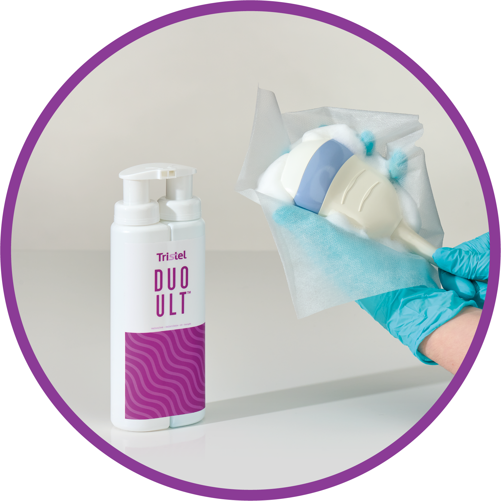 Tristel DUO ULT ermöglicht eine effektive, schnelle und konforme High-Level-Desinfektion von Ultraschallgeräten.